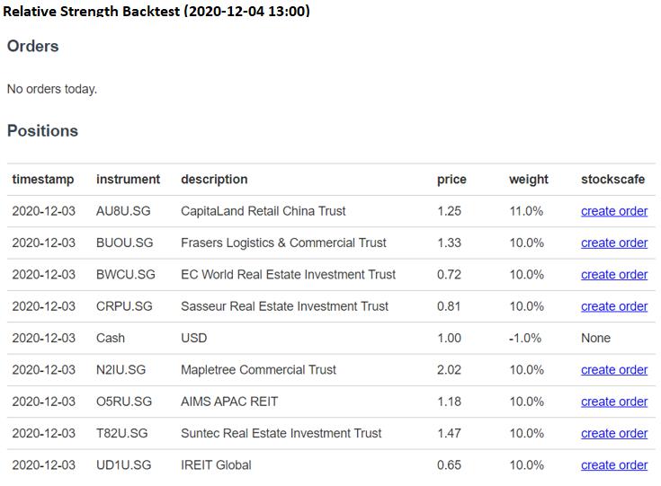 Seems that the issue was with Eagle Hospitality Trust which has been delisted. As the REIT was delisted, the price was flat causing it to be selected by your low volatility factor. My data provider also stopped updating the price of this REIT after the 3rd of December. Can you please run your backtest again but remove Eagle Hospitality Trust (LIW.SG) from the investment universe? Thankyou.